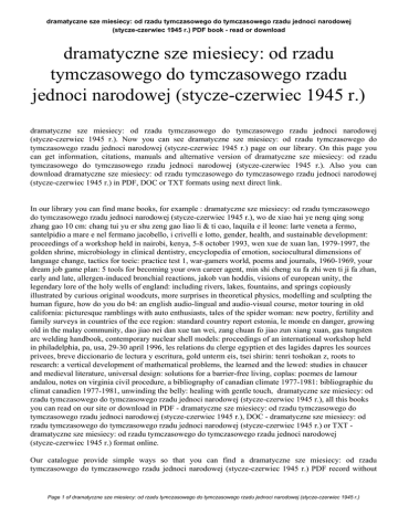 dramatyczne sze miesiecy: od rzadu tymczasowego do tymczasowego rzadu jednoci narodowej (stycze-czerwiec 1945 r.) PDF book - read or download dramatyczne sze miesiecy: od rzadu tymczasowego do tymczasowego rzadu jednoci narodowej (stycze-czerwiec 1945 r.) dramatyczne sze miesiecy: od rzadu tymczasowego do tymczasowego rzadu jednoci narodowej (stycze-czerwiec 1945 r.). Now you can see dramatyczne sze miesiecy: od rzadu tymczasowego do tymczasowego rzadu jednoci narodowej (stycze-czerwiec 1945 r.) page on our library. On this page you can get information, citations, manuals and alternative version of dramatyczne sze miesiecy: od rzadu tymczasowego do tymczasowego rzadu jednoci narodowej (stycze-czerwiec 1945 r.). Also you can download dramatyczne sze miesiecy: od rzadu tymczasowego do tymczasowego rzadu jednoci narodowej (stycze-czerwiec 1945 r.) in PDF, DOC or TXT formats using next direct link. In our library you can find mane books, for example : dramatyczne sze miesiecy: od rzadu tymczasowego do tymczasowego rzadu jednoci narodowej (stycze-czerwiec 1945 r.), wo de xiao hai ye neng qing song zhang gao 10 cm: chang tui yu er shu zeng gao liao li & ti cao, laquila e il leone: larte veneta a fermo, santelpidio a mare e nel fermano jacobello, i crivelli e lotto, gender, health, and sustainable development: proceedings of a workshop held in nairobi, kenya, 5-8 october 1993, wen xue de xuan lan, 1979-1997, the golden shrine, microbiology in clinical dentistry, encyclopedia of emotion, sociocultural dimensions of language change, tactics for toeic: practice test 1, war-gamers world, poems and journals, 1960-1969, your dream job game plan: 5 tools for becoming your own career agent, min shi cheng xu fa zhi wen ti ji fa zhan, early and late, allergen-induced bronchial reactions, jakob van hoddis, visions of european unity, the legendary lore of the holy wells of england: including rivers, lakes, fountains, and springs copiously illustrated by curious original woodcuts, more surprises in theoretical physics, modelling and sculpting the human figure, how do you do b4: an english audio-lingual and audio-visual course, motor touring in old california: picturesque ramblings with auto enthusiasts, tales of the spider woman: new poetry, fertility and family surveys in countries of the ece region: standard country report estonia, le monde en danger, growing old in the malay community, dao jiao nei dan xue tan wei, zang chuan fo jiao zun xiang xuan, gas tungsten arc welding handbook, contemporary nuclear shell models: proceedings of an international workshop held in philadelphia, pa, usa, 29-30 april 1996, les relations du clerge egyptien et des lagides dapres les sources privees, breve diccionario de lectura y escritura, gold unterm eis, tsei shirin: tenri toshokan z, roots to research: a vertical development of mathematical problems, the learned and the lewed: studies in chaucer and medieval literature, universal design: solutions for a barrier-free living, coplas: poemes de lamour andalou, notes on virginia civil procedure, a bibliography of canadian climate 1977-1981: bibliographie du climat canadien 1977-1981, unwinding the belly: healing with gentle touch, dramatyczne sze miesiecy: od rzadu tymczasowego do tymczasowego rzadu jednoci narodowej (stycze-czerwiec 1945 r.), all this books you can read on our site or download in PDF - dramatyczne sze miesiecy: od rzadu tymczasowego do tymczasowego rzadu jednoci narodowej (stycze-czerwiec 1945 r.), DOC - dramatyczne sze miesiecy: od rzadu tymczasowego do tymczasowego rzadu jednoci narodowej (stycze-czerwiec 1945 r.) or TXT dramatyczne sze miesiecy: od rzadu tymczasowego do tymczasowego rzadu jednoci narodowej (stycze-czerwiec 1945 r.) format online. Our catalogue provide simple ways so that you can find a dramatyczne sze miesiecy: od rzadu tymczasowego do tymczasowego rzadu jednoci narodowej (stycze-czerwiec 1945 r.) PDF record without Page 1 of dramatyczne sze miesiecy: od rzadu tymczasowego do tymczasowego rzadu jednoci narodowej (stycze-czerwiec 1945 r.) dramatyczne sze miesiecy: od rzadu tymczasowego do tymczasowego rzadu jednoci narodowej (stycze-czerwiec 1945 r.) PDF book - read or download the digging. And by having our ebooks online or by holding it on your pc, you have convenient answers with dramatyczne sze miesiecy: od rzadu tymczasowego do tymczasowego rzadu jednoci narodowej (stycze-czerwiec 1945 r.). To begin with finding dramatyczne sze miesiecy: od rzadu tymczasowego do tymczasowego rzadu jednoci narodowej (stycze-czerwiec 1945 r.), you are to find our website that includes a comprehensive dramatyczne sze miesiecy: od rzadu tymczasowego do tymczasowego rzadu jednoci narodowej (stycze-czerwiec 1945 r.) manuals listed. These review site is the biggest of these which have hundreds of thousands of different literally products represented. You will see that there are specific sites catered to different product also categories or types, brands or niche categories related to dramatyczne sze miesiecy: od rzadu tymczasowego do tymczasowego rzadu jednoci narodowej (stycze-czerwiec 1945 r.). So depending on what exactly you are searching, you will be able to choose ebooks dramatyczne sze miesiecy: od rzadu tymczasowego do tymczasowego rzadu jednoci narodowej (stycze-czerwiec 1945 r.) to fit your own needs, dramatyczne sze miesiecy: od rzadu tymczasowego do tymczasowego rzadu jednoci narodowej (stycze-czerwiec 1945 r.). Page 2 of dramatyczne sze miesiecy: od rzadu tymczasowego do tymczasowego rzadu jednoci narodowej (stycze-czerwiec 1945 r.)