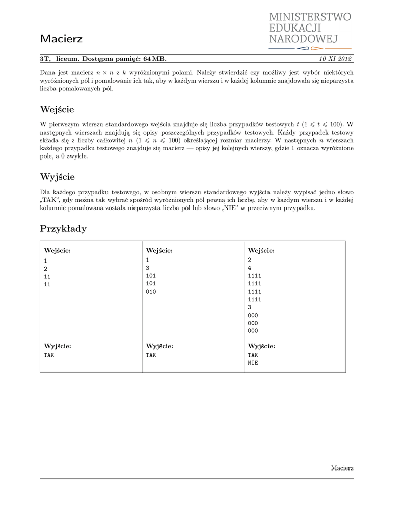 Macierz - Zadania.oig.edu.pl