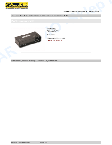 e l k -S i p Ostatnia Zmiana : wtorek, 07 marzec 2017 Akcesoria Car Audio > Kieszenie do odbiorników > Pó³kieszeñ JVC Pó³kieszeñ JVC O I D Nr art.: 2952 Pó³kieszeñ JVC Producent: - A U A R Pó³kieszeñ JVC od 2000 Cena: 19,90PLN Data dodania produktu do sklepu : czwartek, 06 grudzieñ 2007 Email do: - [email protected] Strony 1/1