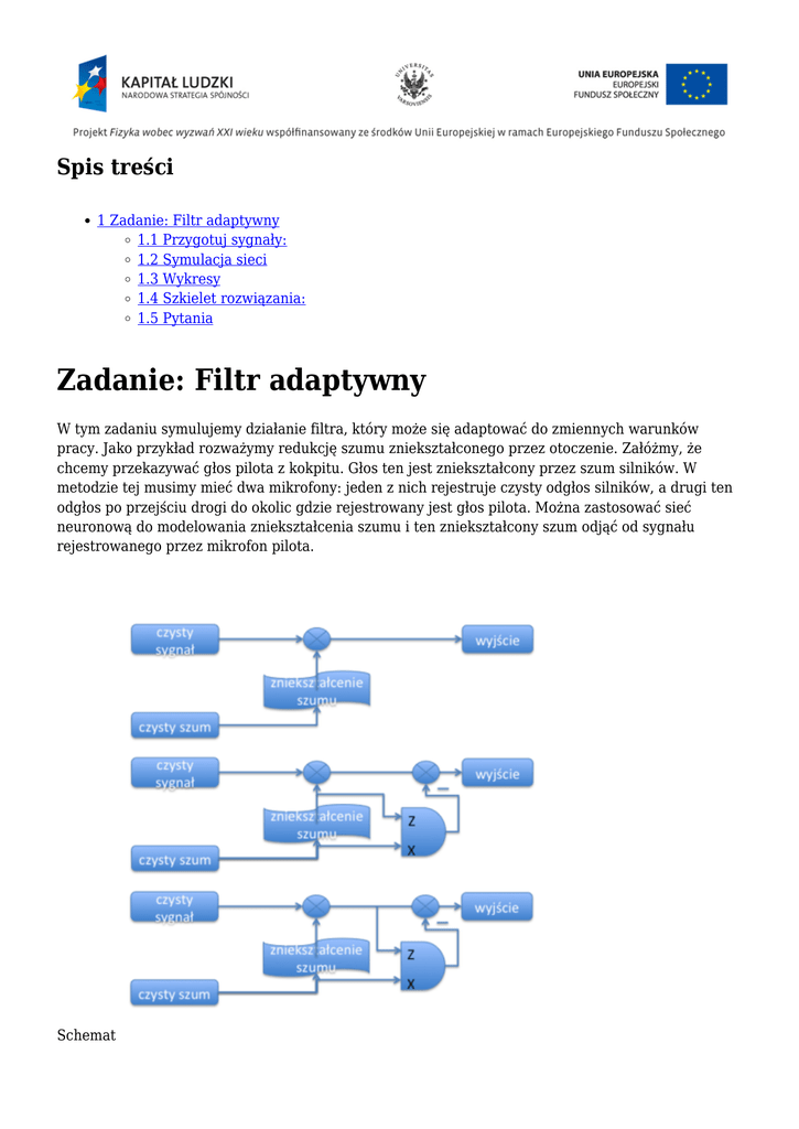 W tym zadaniu symulujemy działanie filtra, który może się adaptować do zmiennych warunków