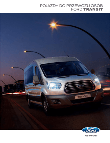 POJAZDY DO PRZEWOZU OSÓB FORD TRANSIT 1 Wizjonerski. Genialny. Wybitny. Każdy samochód nosi jego podpis. Bez problemu Gdy trzeba przewieźć pasażerów szybko, bezpiecznie i wygodnie, 2 3 najlepszym wyborem będzie nowy Ford Transit autobus. Pokazany model to Ford Transit L3 H2 Trend z lakierem metalizowanym Tectonic Silver (opcja) oraz 16-calowymi obręczami aluminiowymi (opcja). Najważniejsi są ludzie Większy, bardziej przestronny i uniwersalny. Ford Transit autobus jest dostępny z różnymi długościami nadwozia i konfiguracjami siedzeń, umożliwiającymi przewóz do 17 pasażerów. 17x Dokąd tylko zechcesz Wygoda, elastyczność i przestrzeń w nowym Fordzie Transit sprawiają, 4 że nawet długie podróże są przyjemnością. Pokazany model to Ford Transit L3 H2 Trend z lakierem metalizowanym Deep Impact Blue (opcja). Odchylane siedzenia Odchylane oparcia i podłokietniki Otwierane tylne szyby boczne w wyposażeniu standardowym Przyciemniane szyby oraz otwierane zwiększają wygodę pasażerów. okno w bocznych drzwiach należą do wyposażenia standardowego. Kolejne otwierane okno zapewnia dodatkową wentylację dla pasażerów w czwartym rzędzie w wersjach L4. 5 Wszystko się sumuje Przestrzeń i niezawodność, niskie koszty utrzymania oraz przyciągająca wzrok stylistyka nadwozia sprawiają, że nowy Ford Transit to doskonała wizytówka firmy. 6 Pokazany model to Ford Transit L3 H3 Trend z lakierem metalizowanym Moondust Silver (opcja) oraz 16-calowymi obręczami aluminiowymi (opcja). Koszty eksploatacji Imponujące okresy między przeglądami, wynoszące 2 lata lub 50 000 km, oznaczają krótszy czas przestoju i znaczne zmniejszenie kosztów eksploatacji. 2 lata 50,000 km 7 Łatwo Jasne i przestronne wnętrze o poziomie komfortu takim jak w samochodach osobowych, 8 9 z nowoczesnymi rozwiązaniami takimi jak Ford SYNC z funkcją wzywania pomocy*. Nowy Ford Transit z powodzeniem łączy pracę z przyjemnością. Pokazany model to Ford Transit L4 H3 Trend z lakierem metalizowanym Lunar Sky (opcja). Ford SYNC z funkcją wzywania pomocy (Emergency Assistance)* Samochodowy system łączności nowej generacji. Ford SYNC umożliwia obsługiwanie popularnych odtwarzaczy MP3, telefonów z funkcją Bluetooth®oraz napędów USB *Funkcja Emergency Assistance jest dostępna w ponad 30 krajach Europy. Działa w połączeniu z kompatybilnym telefonem komórkowym, włączonym, sparowanym i znajdującym się w samochodzie w chwili odpalenia poduszki powietrznej (z wyjątkiem poduszek ochrony kolan, jeśli są zamontowane) lub aktywacji wyłącznika odcinającego pompę paliwa. **Wymagany kompatybilny telefon komórkowy. Funkcja czytania wiadomości SMS nie jest dostępna we wszystkich językach europejskich. Najnowsze informacje znajdują się na stronie ww.ford.pl. Uwaga Logotyp i znaki graficzne Bluetooth® są zarejestrowanymi znakami towarowymi firmy Bluetooth SIG, Inc. i ich wykorzystanie przez Ford Motor Company i firmy związane z Ford Motor Company jest przedmiotem odpowiedniej licencji. Inne znaki i nazwy towarowe są własnością ich zarejestrowanych właścicieli. za pomocą prostych komend głosowych. Urządzenie może nawet odczytać na głos odbierane wiadomości SMS**. Dodatkowo funkcja wzywania pomocy (Emergency Assistance)* umożliwia w razie wypadku nawiązanie połączenia alarmowego z numerem 112. 112 Holowanie? Ależ oczywiście! Podczas 6-miesięcznego testu przejechaliśmy 240 000 kilometrów po różnych drogach i nawierzchniach, przez większość czasu holując przyczepę z pełnym obciążeniem. 10 Nowy Ford Transit zdał ten test celująco. Zaprojektowany, by wieść długie i pracowite życie Jak każdy inny samochód użytkowy marki Ford, również nowy Transit ma trwałość w swoich genach. Długotrwały program rygorystycznych testów jest gwarancją, że jest to pojazd, który długo i wiele wytrzyma. 11 Wysoko osadzone reflektory Halogenowe reflektory projekcyjney są umieszczone w miejscu, gdzie są mniej narażone na uszkodzenia. (Standard) Zderzak tylny wykonany z kilku segmentów Zderzak tylny jest wykonany z kilku segmentów, co obniża koszt ewentualnych napraw. Wytrzymałość potwierdzona testami Rozbudowany program prób obejmował trwające dwa miesiące jazdy z maksymalnymi prędkościami oraz liczne jazdy na niskich biegach w gęstym ruchu miejskim, dobrze oddające ciężkie warunki, w jakich na co dzień pracuje większość aut dostawczych. Szerokie boczne listwy nadwozia Wytrzymałe boczne listwy nadwozia chronią samochód przed przypadkowymi uszkodzeniami. Sprawdzone silniki wysokoprężne z rodziny Duratorq TDCi Warunki ekstremalne 250 000 razy zamknięte drzwi Jazda bez końca Nowy Ford Transit przeszedł testy w warunkach ekstremalnych, od oblodzonych prototypów dających się uruchomić przy -40°C na wysokości 4500 m n.p.m. po wspinaczki na długie podjazdy z maksymalnie obciążoną przyczepą w upale sięgającym 50°C. Zatrzasnęliśmy drzwi przesuwne 250 000 razy, Podczas jazd próbnych przeprowadzanych w fazie rozwoju produktu nowy Ford Transit przejechał łącznie przednie drzwi 250 000 razy, a tylne drzwi 150 000 razy, 5 mln. kilometrów, w tym 400 000 km z prawdziwymi klientami. To samochód, na którym możesz zawsze polegać, w każdym najdrobniejszym szczególe. aby mieć pewność, ze nigdy nie zawiodą. 12-letnia gwarancja na perforację korozyjną Nowy Ford Transit zawdzięcza trwałość zewnętrznego poszycia nadwozia wieloetapowemu procesowi lakierowania. Od wtryskiwania na gorąco wosku w zamknięte profile nadwozia po wytrzymałe lakiery. Najnowsze powłoki i technologie lakierowania zapewniają mu świeży i atrakcyjny wygląd przez wiele lat. Znane ze swojej niezawodności i efektywności silniki Duratorq TDCi o pojemności 2,2 l są dostępne w dwóch wersjach różniących się mocą i wartościami momentu obrotowego. Powłoka cynkowa Powłoka fosforanowa Powłoka elektroforetyczna Warstwa wierzc