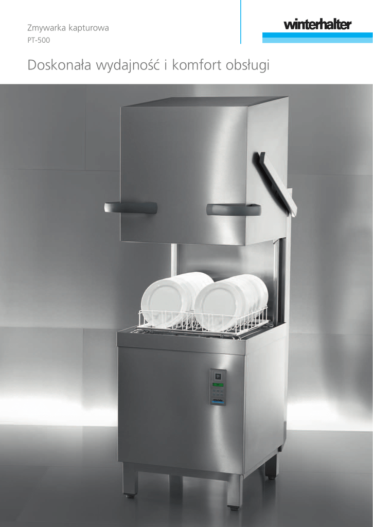 Zmywarka kapturowa PT-500 Doskonała wydajność i komfort obsługi • PT-500 PT-500 – po prostu perfekcyjna PT-500 to nowa zmywarka kapturowa zaprezentowana przez firmę Winterhalter, która zmywa szybko, wydajnie i perfekcyjnie. Gwarantują to liczne nowo opracowane komponenty i innowacyjny system zmywania. Oprócz higienicznej czystości nawet w okresie największego natężenia pracy, PT-500 przekonuje w szczególności dużym komfortem użytkowania: maszyna jest prosta w obsłudze i ergonomiczna, dzięki czemu wyraźnie usprawnia pracę personelu. PT-500 marki Winterhalter to zmywarka niezawodna i wydajna pod każdym względem. Perfekcyjne efekty zmywania w krótkim czasie dzięki: 2 • krótszym programom • znacznie krótszym czasom nagrzewania • wydajności o maksymalnym zasięgu • poczwórnemu systemowi filtracji Szybkość i efektywność • Szybkie i czyste zmywanie Wnętrze zbiornika (przekrój) Krótkie programy Maksymalny zasięg Zmywarka oferuje trzy dostosowane do stopnia zabrudzenia programy: krótki, standardowy i intensywny. Dzięki aktywnemu zarządzaniu energią wydajność maszyny w programie krótkim dochodzi do 60 koszy na godzinę. Nowe, eliptyczne pola zmywania ze specjalnymi dyszami zapewniają dużą wydajność zmywania o maksymalnym zasięgu, każdym miejscu i w każdym załamaniu. Mimo mniejszego zużycia wody płuczącej gwarantuje to higieniczną czystość również w przypadku bardzo zabrudzonych naczyń. Skrócony czas nagrzewania System aktywnego zarządzania energią w optymalny sposób wykorzystuje dostępną energię, aby maszyna szybko była gotowa do pracy. Czas ogrzewania skraca się w ten sposób nawet o 50 %. W porównaniu z innymi zmywarkami kapturowymi PT-500 jest zatem znacznie szybciej gotowa do pracy. Wydajna filtracja PT-500 wyposażona jest w poczwórny system filtracji. Resztki jedzenia i inne zanieczyszczenia przechwytuje sito powierzchniowe z wyjmowanym sitowym koszykiem. Dodatkowo sprawdzony już system Mediamat wykorzystujący siłę odśrodkową usuwa najdrobniejsze zabrudzenia, jak na przykład fusy z kawy. Dodatkową ochronę zapewnia sito pompy. 3 • Łatwość obsługi i higiena Zdecydowanie łatwiejsza obsługa Prosta obsługa PT-500 jest wyposażona w wyświetlacz z kodowaniem barwnym, sygnalizującym różne stany maszyny, jak nagrzewanie, zmywanie i gotowość do pracy. Dzięki temu niewprawni i często zmieniający się pracownicy mogą szybko opanować jej obsługę. Ponadto wybrany program uruchamiany jest jednym przyciskiem lub automatycznie po zamknięciu kaptura. Ergonomiczne uchwyty na kapturze pozwalają bez trudu obsługiwać zmywarkę, przede wszystkim w trakcie długiego cyklu pracy. Zintegrowane funkcje kontrolne PT-500 posiada liczne funkcje kontrolne, które również odciążają pracowników. Temperaturę zbiornika i bojlera można w każdej chwili sprawdzić na wyświetlaczu. Czytelne symbole sygnalizują brak środka do mycia i nabłyszczacza. Czujnik przecieków monitoruje niekontrolowany wyciek wody i w razie potrzeby blokuje jej dopływ do urządzenia. PT-500 zapewnia tym samym bezpieczne zmywanie, zapobiegając zarazem szkodom pośrednim. Koncepcja higieny, która pozwala zaoszczędzić czas Komfort obsługi i gwarancja higieny: 4 • intuicyjna obsługa • ułatwiające pracę funkcje kontrolne • odciążająca pracowników koncepcja higieny Głęboko tłoczony zbiornik, higieniczna grzałka i osłona tylna zapobiegają gromadzeniu się kamienia i zanieczyszczeń. Komponenty te zapewniają czyste wnętrze maszyny. W połączeniu z programem samoczyszczenia znacznie ułatwiają personelowi pracę na koniec zmiany. Wyposażenie • PT-500 Szybkość i efektywność System aktywnego zarządzania energią Eliptyczne pola zmywania ze specjalną geometrią dysz System filtracji z koszykiem sitowym, sitem powierzchniowym, sitem pompy i systemem Mediamat Wbudowany dozownik środka do mycia Wbudowany dozownik nabłyszczacza Wbudowany zmiękczacz Łatwość obsługi i higiena Elektroniczny układ sterowania z kodowanym barwnie wyświetlaczem 3 programy zmywania (krótki, standardowy i intensywny) Dostosowanie programu zmywania poprzez parametry Wskaźnik temperatury w zbiorniku i w bojlerze Program samoczyszczenia urządzenia Sygnalizacja braku środka myjącego (w przypadku zintegrowanego dozownika) Sygnalizacja braku nabłyszczacza Sygnalizacja braku soli (w przypadku wbudowanego zmiękczacza) Poziom szefa kuchni z dostępem chronionym kodem PIN Poziom serwisanta z dostępem chronionym kodem PIN Zintegrowany dziennik błędów Kaptur z pozycją blokady Automatyczny start kaptura Głęboko tłoczony zbiornik higieniczny Higieniczna grzałka zbiornika Higieniczny nośnik kosza TwinSet (połączenie 2 zmywarek PT-500) System zmywania w niskich temperaturach effect do naczyń szklanych* System zmywania w niskich temperaturach effect do naczyń* Termostop zapewniający higienę Pompa odpływowa Pompa podnosząca ciśnienie wody Czujnik przecieków Wielofazowość Listwa przyłączeniowa do dozowników zewnętrznych Wyjście wielofunkcyjne jako złącze do urządzeń zewnętrznych Osłona tylna CN • • • ° • ° • • • • • • • • • • • • • • • • ° ° ° • • • • • • • • • Standard ° Opcja * Nie wszędzie dostępne. 5 • Indywidualne planowanie / dane techniczne Przykładowe projekty Ustawienie narożne PT-500 z kierunkiem przepływu w przód-w prawo PT-500 z kierunkiem przepływu w prawo-w lewo Wymiary Możliwa jest również konfiguracja PT-500 do wersji TwinSet. Odpowiednie rysunki techniczne i wymiary znaleźć można na stronie www.winterhalter.biz/pt-scout * Wysokość robocza opcjonalnie również 900 mm zamiast 850 mm. Wymiary pionowe zwiększają się przez to o 50 mm. 6 Dane techniczne • Dane techniczne PT-500 Ilość programów Wydajność teoretyczna (programy krótki / standardowy / intensywny) 3 [kosze / h] 60 / 30 / 15 Zużycie 