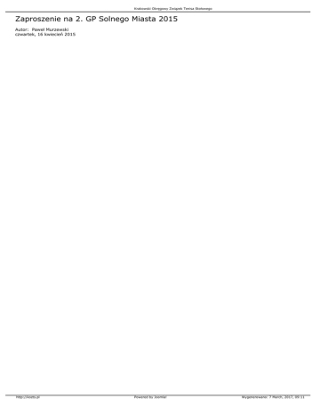 Krakowski Okręgowy Związek Tenisa Stołowego Zaproszenie na 2. GP Solnego Miasta 2015 Autor: Paweł Murzewski czwartek, 16 kwiecień 2015 http://kozts.pl Powered by Joomla! Wygenerowano: 7 March, 2017, 09:11