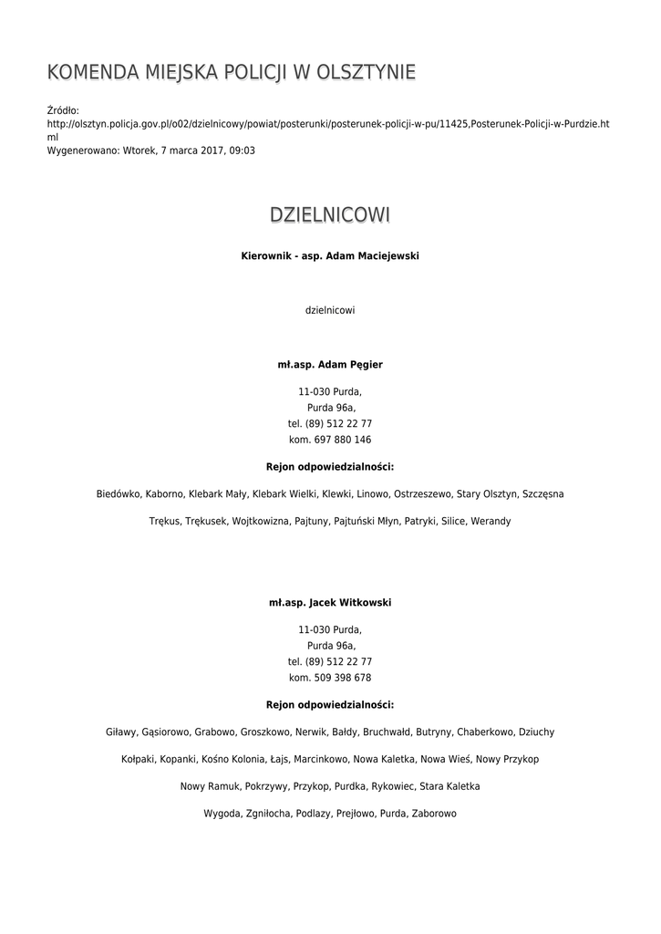 Generuj PDF - Komenda Miejska Policji w Olsztynie