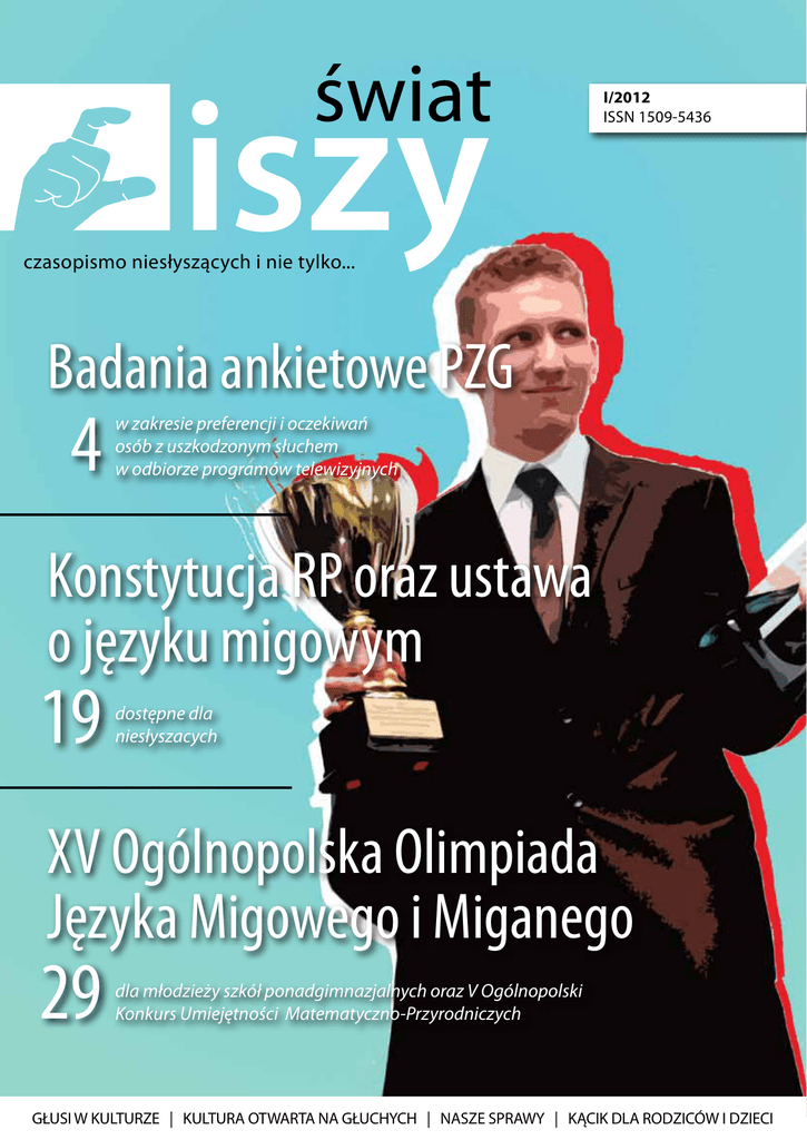 iszy I/2012 ISSN 1509-5436 czasopismo niesłyszących i nie tylko... Badania ankietowe PZG 4 w zakresie preferencji i oczekiwań osób z uszkodzonym słuchem w odbiorze programów telewizyjnych Konstytucja RP oraz ustawa o języku migowym 19 dostępne dla niesłyszacych X V Ogólnopolska Olimpiada Języka Migowego i Miganego 29 dla młodzieży szkół ponadgimnazjalnych oraz V Ogólnopolski Konkurs Umiejętności Matematyczno-Przyrodniczych GŁUSI W KULTURZE | KULTURA OTWARTA NA GŁUCHYCH | NASZE SPRAWY | KĄCIK DLA RODZICÓW I DZIECI KĄCIK DLA RODZICÓW I DZIECI VI Ogólnopolski Konkurs Wiedzy Kucharskiej w lublinieckim Ośrodku W kiego Ośrodka, organizatora Konkursu, przestrzegając zasadę fair play, brali w nim udział poza konkursem. Uczestników i gości zebranych na uroczystości otwarcia Konkursu, bardzo serdecznie powitał mgr Rafał Dziwis - dyrektor lublinieckiego Ośrodka. Wyraził on radość z faktu, że lubliniecki Ośrodek, zlokalizowany na pięknej Ziemi Lublinieckiej, posiadający blisko osiemdziesięcioletnią tradycję w edukacji młodzieży z dysfunkcją słuchu, może gościć uczniów specjalnej troski edukacyjnej niemal z każdego zakątka Polski. Uczestnicy i goście Konkursu podczas uroczystości jego rozpoczęcia mogli obejrzeć program artystyczny w wykonaniu grupy teatralnej „CICHO-SZA” działającej w Ośrodku oraz multimedialną prezentację promującą Ośrodek. Celem Konkursu było popularyzowanie, doskonalenie i rozwijanie wśród młodzieży niesłyszącej i słabosłyszącej wiedzy kucharskiej oraz umożliwienie najlepszym uczniom niesłyszącym zaprezentowanie na szczeblu ogólnopolskim swojej wiedzy teoretycznej i umiejętności praktycznych z dziedziny kucharstwa, które nabyli w procesie dotychczasowej edukacji szkolonej pod kierunkiem swoich mistrzów – nauczycieli. Konkurs składał się z dwóch etapów: pisemnego i praktycznego. W etapie pisemnym uczestnicy rozwiązywali test, przygotowany przez nauczycieli Ośrodka, zawierający 50 zadań zamkniętych, obejmujących zakres materiału nauczania w zawodach kucharz małej gastronomii i kucharz. Następnie w etapie praktycznym najlepsi uczestnicy z etapu pisemnego sporządzali kanapki dekoracyjne. Wyniki etapu praktycznego zostały ocenione przez jury w składzie: mgr Ewę Jeziorską – wicedyrektor Ośrodka ds. szkół ponadgimna- foto z archiwum SOSW Lubliniec dniach 9-11 marca 2012 r. w Specjalnym Ośrodku Szkolno-Wychowawczym dla Niesłyszących i Słabosłyszących w Lublińcu odbył się VI Ogólnopolski Konkurs Wiedzy Kucharskiej dla uczniów niesłyszących i słabosłyszących ze szkół ponadgimnazjalnych. Honorowy patronat nad Konkursem objął Starosta Powiatu Lublinieckiego mgr inż. Joachim Smyła. Do konkursowej rywalizacji przystąpiło 37 uczniów niesłyszących i słabosłyszących ze szkół ponadgimnazjalnych kształcących się w zawodach kucharz małej gastronomii na poziomie zasadniczej szkoły zawodowej i kucharz na poziomie szkoły średniej w technikum, z jedenastu Specjalnych Ośrodków Szkolno-Wychowawczych: Bydgoszczy, Kielc, Krakowa, Kutna, Łodzi, Poznania, Przemyśla, Radomia, Sławna, Szczecina, Żar i z Lublińca. Uczniowie z lubliniec- I/2012 iszy 29 KĄCIK DLA RODZICÓW I DZIECI foto z archiwum SOSW Lubliniec 30 iszy I/2012 foto z archiwum SOSW Lubliniec Powiatowego w Lublińcu oraz dyrekcję Ośrodka. Nadto wszyscy uczestnicy i ich opiekunowie otrzymali upominki, hojnie ufundowane przez lublinieckie firmy, oraz dyplomy uczestnictwa. Za okazany „Dar Serca” uczniom niesłyszącym i słabosłyszącym uczestniczącym w Konkursie, wszystkim fundatorom nagród, upominków oraz produktów spożywczych dyrekcja Ośrodka składa serdeczne podziękowania. Zmagania konkursowe, dające ich uczestnikom radość z wysiłku, stały na bardzo wysokim poziomie. Były bardzo emocjonujące i wyrównane. Brali w nich udział najlepsi z najlepszych. Konkurs, będąc swoistym ogólnopolskim świętem dla uczniów niesłyszących i słabosłyszących, kształcących się w zawodach kucharz małej gastronomii i kucharz oraz osiągających nieprzeciętne wyniki w nauce, pozwolił zarówno na prezentację przez nich swojej wiedzy i umiejętności praktycznych, jak też na wzajemną integrację jego uczestników i nawiązanie nowych przyjaźni. Kolejny VII Ogólnopolski Konkurs Wiedzy Kucharskiej dla uczniów niesłyszących i słabosłyszących ze szkół ponadgimnazjalnych odbędzie się za rok w Ośrodku Szkolno-Wychowawczym Nr 2 w Bydgoszczy. foto z archiwum SOSW Lubliniec -Wychowawczego dla Dzieci Niesłyszących w Poznaniu. W kategorii kucharz zwyciężył uczeń Marek Bełz z Ośrodka dla Dzieci z Wadami Słuchu i Mowy w Żarach. Drugie miejsce zajął Piotr Wojnicki ze Specjalnego Ośrodka Szkolno-Wychowawczego dla Dzieci Niesłyszących z Radomia, a trzecie uczennica Anna Zacharz ze Specjalnego Ośrodka Szkolno-Wychowawczego dla Niesłyszących i Słabosłyszących w Kielcach. W konkurencji drużynowej najlepszą okazała się drużyna ze Specjalnego Ośrodka Szkolno-Wychowawczego dla Niesłyszących i Słabosłyszących w Kielcach. Drugie miejsce zdobyła drużyna z Ośrodka dla Dzieci z Wadami Słuchu i Mowy w Żarach, a trzecie z Ośrodka Szkolno-Wychowawczego Nr 2 w Bydgoszczy. Zwycięzcy Konkursu otrzymali cenne nagrody i puchary ufundowane przez Starostę Powiatu Lublinieckiego, a także przez Państwowe Gospodarstwa Leśne Nadleśnictwo Lubliniec, Niepubliczny ZOZ „Salus”, Wydawnictwo REA s.j. w Warszawie, Bank BGŻ Odział w Lublińcu. Zostały one wręczone podczas uroczystości zakończenia Konkursu przez mgr inż. Bożenę Podlęśkę – naczelnika wydziału edukacji Starostwa foto z archiwum SOSW Lubliniec zjalnych, mgr Sylwię Rose - kierownika praktycznej nauki zawodu oraz Łucję Kaczmarczyk - szefową kuchni Ośrodka. Oceniano walory smakowe, estetykę i oryginalność kanapek. Uczestnicy etapu praktycznego wykazali się dużymi umiejętnościa