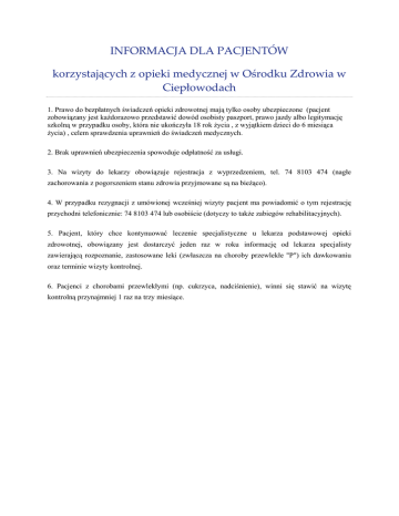 INFORMACJA DLA PACJENTÓW korzystających z opieki