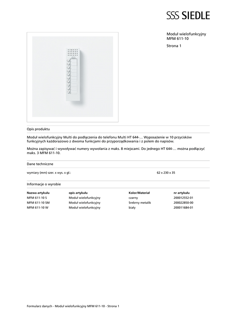 Moduł wielofunkcyjny MFM 611-10 Strona 1