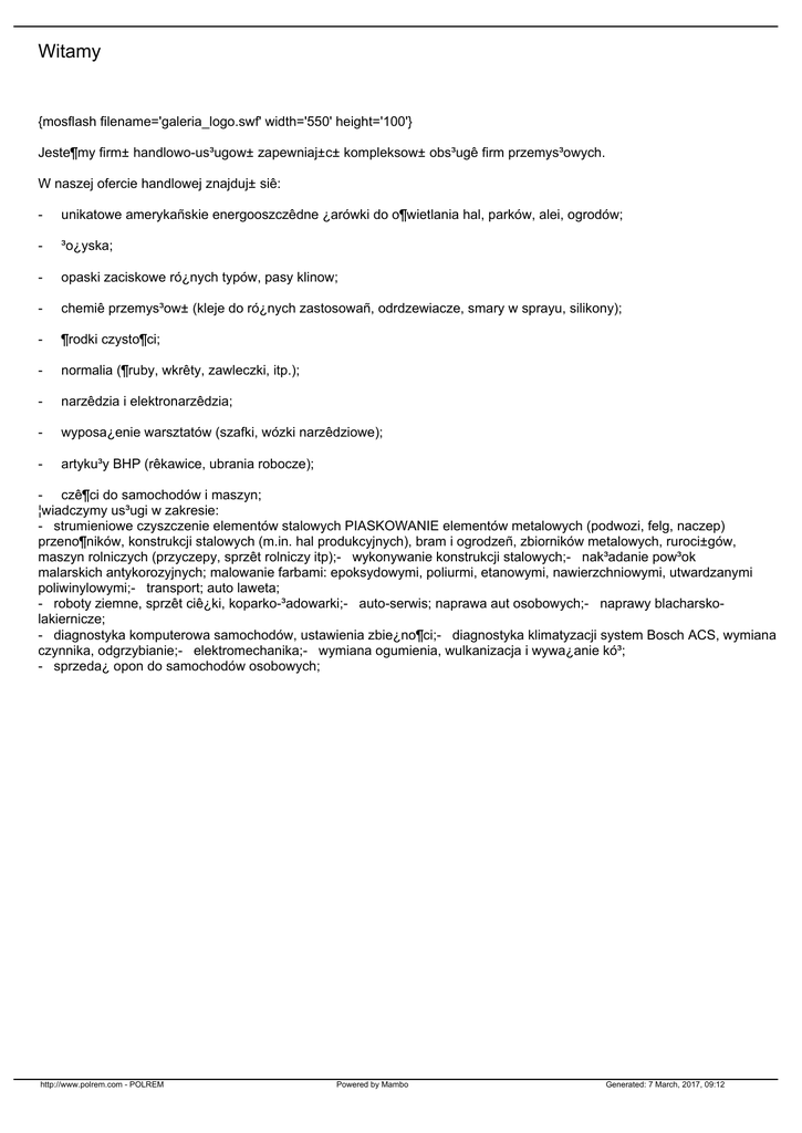 Jeste¶my firm± handlowo-us³ugow± zapewniaj±c± kompleksow± obs³ugê firm przemys³owych.