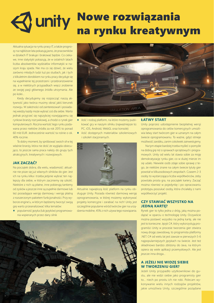 Rynek gier to tylko jedna z dróg, jaką można podążać w oparciu o technologię Unity. Oczywiście
