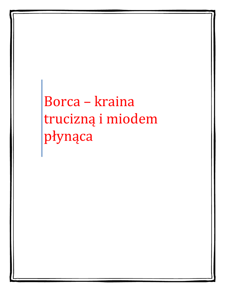 Borca – kraina trucizną i miodem płynąca „Drogi L…! Borca jest piękną krainą, ale nie możesz ufać nikomu, ale to NIKOMU! Przyjaciel wyda cię za kilka złociszy, karczemna dziewka sprzeda najpierw zbójcom, a potem strażnikom, jeśli uzna, że waga twej sakiewki jest dość duża. Pieniądz otwiera tu każde drzwi, lecz musisz mieć baczenie, aby ci go nie odebrano w „majestacie prawa”. Ale to wszystko to nic w porównaniu z trucizną, jaka jątrzy tę krainę. Nawet woda zdaje się nieść powolną śmierć. Drzewa usychają, a ludzie idą w ich ślady, dlatego zaklinam Cię, L… wyjeżdżaj jak najszybciej, w przeciwnym wypadku sczeźniesz lub zgnijesz w lochu! W. P.S. Mam nadzieję, że ten list do ciebie dotrze, wysyłam go zaufanym umyślnym!” - list będący dowodem w sprawie zdrady Wal de Mamara, znaleziony w aktach jego procesu (oskarżonego skazano na dożywotnie uwięzienie w kazamatach). 2 Artykuł ten opisuje Borcę, domenę, która sąsiaduje z Barovią i stanowi odskocznię, od mrocznego cienia, jaki rzuca hrabia von Zarovitch. Nie oznacza to jednak, że Borca jest krainą idylliczną, czy spokojną. O nie, daleko jej do tego, po prostu na jej ziemiach zagrożenie przyjmuje inną postać. Poziom rozwoju: Renesans. Borca przewyższa poziomem rozwoju odizolowane i zacofane wsie Barovii. Na jej drogach często spotykane są karety, funkcjonuje służba kurierska, a w największych miastach nocami zapala się uliczne latarnie. Krajobraz: Borca prezentuje sobą pełen wachlarz krajobrazów. Wędrowiec natknie się na góry, wzgórza, doliny, tereny lesiste i rzeki. Borca leży na północno-zachodnim krańcu gór Balinok, zaściełając tereny u podnóży góry Gries. Kolor jaki przychodzi na myśl, to zieleń, wiosną i latem gęsto ukwiecona płatkami dzikich kwiatów. Znaczną część jej terenów pokrywają gęste lasy, drzewa których pnie częstokroć oplecione są bluszczem. W puszczy trafić można na wiele rodzajów orzechów i jeżyn, częstym widokiem są muchomory, występujące w licznych 3 odmianach. Ich wspólną cechą jest słodki lepik, na szczęście grzyby łatwo rozpoznać po nakrapianych fioletowymi plamami kapeluszach. Lepik stosuje się w borcańskiej kuchni, bowiem w małych ilościach nie jest szkodliwy, a świetnie nadaje się do ciast i deserów. Borca znana jest także z gorących źródeł i gejzerów, które można spotkać na całym terenie. Niektóre zieją trującymi, siarkowymi gazami, dookoła innych buduje się banie, gdzie ludzie zażywają kąpieli. Borcę przecinają dwie rzeki: Luna i Wasza, których spokojny nurt zasilany jest przez śniegi z topniejących górskich zboczy. Domy w Borce buduje się duże i przysadziste, z cegieł i wapna, którym na dodatek bieli się ściany. Trójkątne dachy wykańcza się ciemnoszarym gontem i niewielkimi ozdobami. Szczególnie popularnym motywem są bluszcze lub roślinne girlandy, które rzeźbi się dookoła drzwi czy okien. Równie często spotykane są figurki bogini Ezry, która ma chronić domownikiem przed złem. Ulice wsi i miast są wąskie i wyłożone kocimi łbami z polerowanych kamieni. Nad nimi zwieszają się szerokie dachy i wystające wykusze pięter. Pogoda w Borce jest dosyć łagodna i choć zimy bywają mroźne, to lata są ciepłe i przyjemne. Główne osady: Lekvarest (populacja 8500 mieszkańców), Lechberg (5500 mieszkańców), Sturben (2000 mieszkańców), Von Ziyden (1200 osób). Ludność: 34200. Ludzie 95%, niziołki 4%, inni 1%. Języki: Balok*, Mordencki*, Falkovnijski, Luktar, Niziołków. Religia: Ezra*, Hala. Mieszkańcy Borci są średniej budowy ciała. Charakteryzują się delikatnymi dłońmi, ale wiek szybko odciska na ludziach nieuniknione piętno. Cera ludzie jest dosyć ciemna, a włosy zazwyczaj brązowe. Mężczyźni ze wszystkich klas społecznych noszą fryzury średniej długości , kobiety często zaplatają je w skomplikowane warkocze. Ubrania są zazwyczaj praktyczne pośród gminu. Mężczyźni noszą luźne koszule i spodnie, podczas gdy kobiety przyodziewają się w luźne bluzki i spódnice średniej długości. Dominują stonowane, naturalne kolory. Arystokracja z kolei preferuje modę pochodzącą z Dementlieu, unika jednak barw jaskrawych. Dominuje czerń i biel, podkreślona srebrną biżuterią. Żywsze kolory pojawiają się w ubierze ludzi jedynie z powodu z okazji świąt. 4 Mieszkańcy Borci na pierwszy rzut oka są ludźmi ponurymi i fatalistycznie nastawionymi do życia. Nic dziwnego, wysokie podatki, samowola możnych i brutalne porządki w kraju nauczyły ich trzymać język za zębami, nerwy na wodzy, a wzrok wbity w ziemię. Jeśli dawniej mieszkańcy tej krainy słynęli z poczucia humoru, radości i tego, że czerpią z życia pełnymi garściami, teraz zdawać się może, że jakaś trucizna zatruwa po społu ich dusze, umysły i ciała. Jedyną ulgę przynosi im kościół Ezry. Na mszach zbierają się całe rodziny, a Wielka Katedra w Levkarest jawi się niczym pochodnia w mroku. Prawo i ustrój: W Borce panują rządy silnej ręki. Ten, kto ma więcej zbirów na żołdzie, lepsze układy z możniejszymi lub jest po prostu bezczelnym okrutnikiem, ten rządzi. Pośród ciągłego i permanentnego tumultu, zdrad, intryg i morderstw jakie trapią życie „arystokracji” tylko dwie osoby pozostają niezmiennie u władzy: „Czarna Wdowa” Ivana Bortisi oraz Ivan Dilsnya. Ivana odziedziczyła władzę nad Borcą po swojej matce, Kamili, która z kolei objęła tron za sprawą uwodzicielskiego uroku i znajomości trucizn. Obydwie te zdolności przekazała córce zanim spotkał ją smutny koniec i śmierć od pazurów wilkołaka. Ci nieliczni, którzy pamiętają tamte czasy, twierdzą, że Ivana mogła mieć coś wspólnego z tą tragedią. To podobno ona umówiła matkę z tajemniczym adoratorem, który okazał się bestią. Jeśli plotkarze mają choć trochę oleju w głowie, a ci którzy dożyli dzisiej
