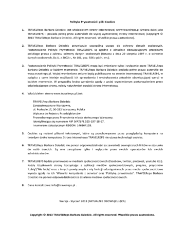 Polityka Prywatności i pliki Cookies 1. TRAVELReps Barbara