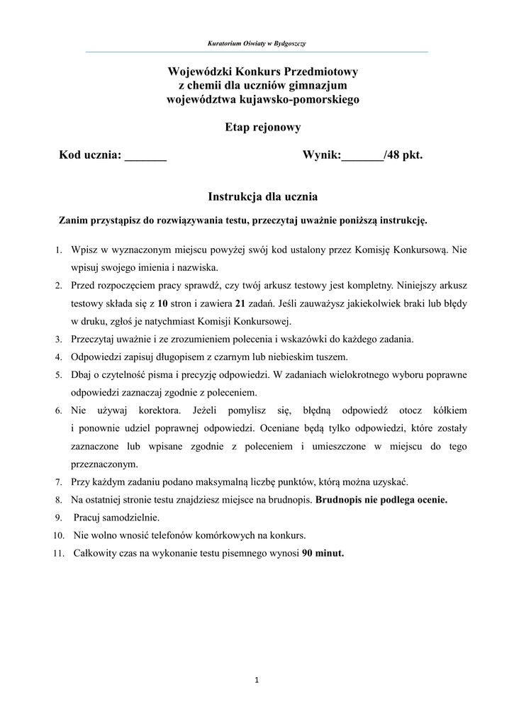 Chemia - test - Kuratorium Oświaty w Bydgoszczy