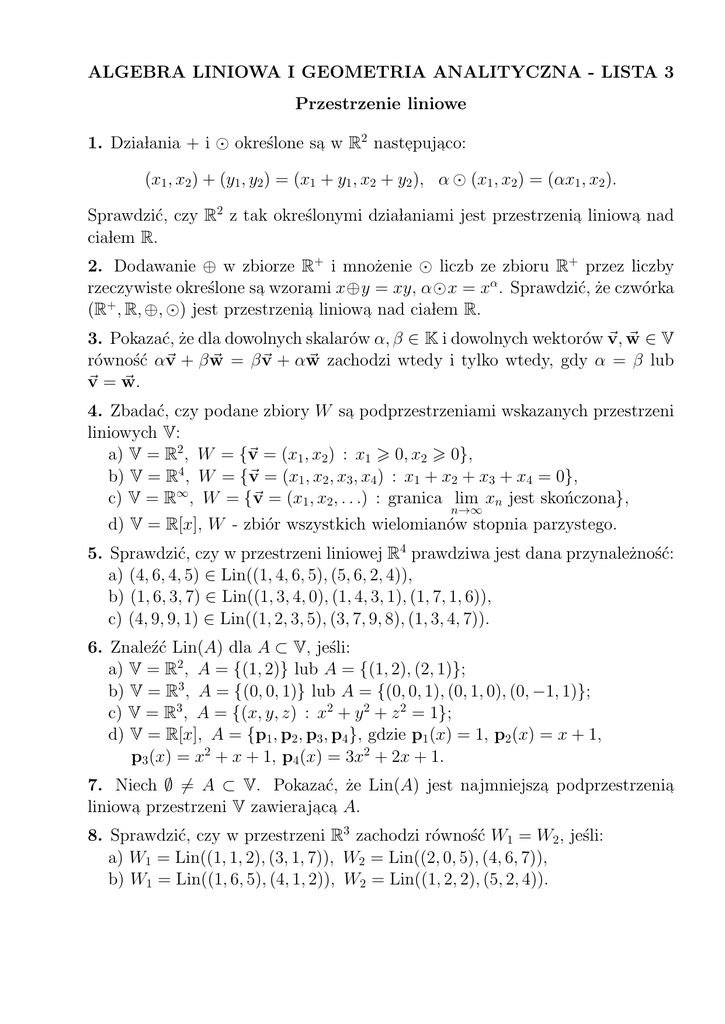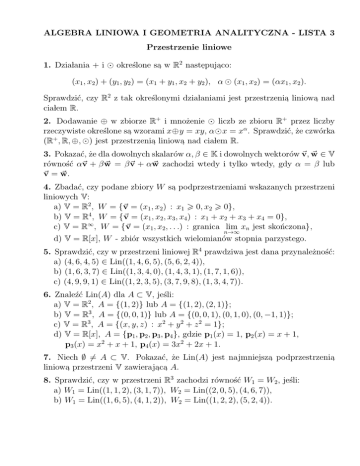 4. Zbadać, czy podane zbiory W sa, podprzestrzeniami wskazanych przestrzeni