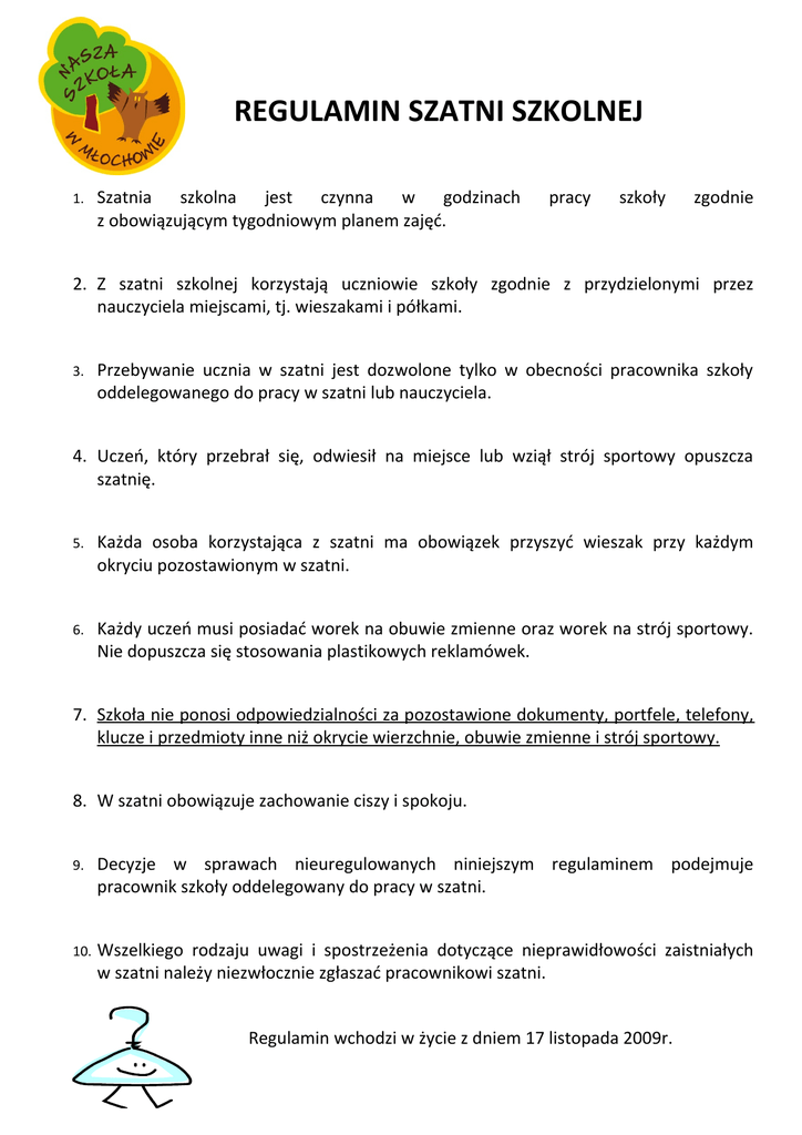 REGULAMIN SZATNI SZKOLNEJ