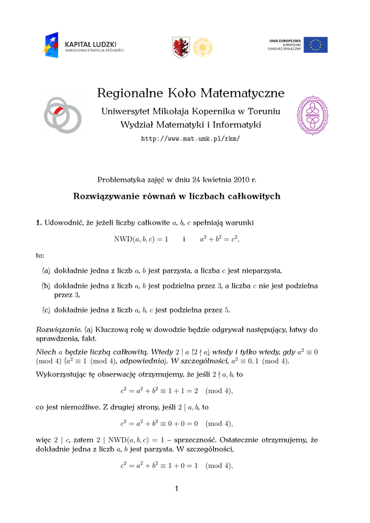 1. Udowodnić, że jeżeli liczby całkowite a, b, c spełniają warunki