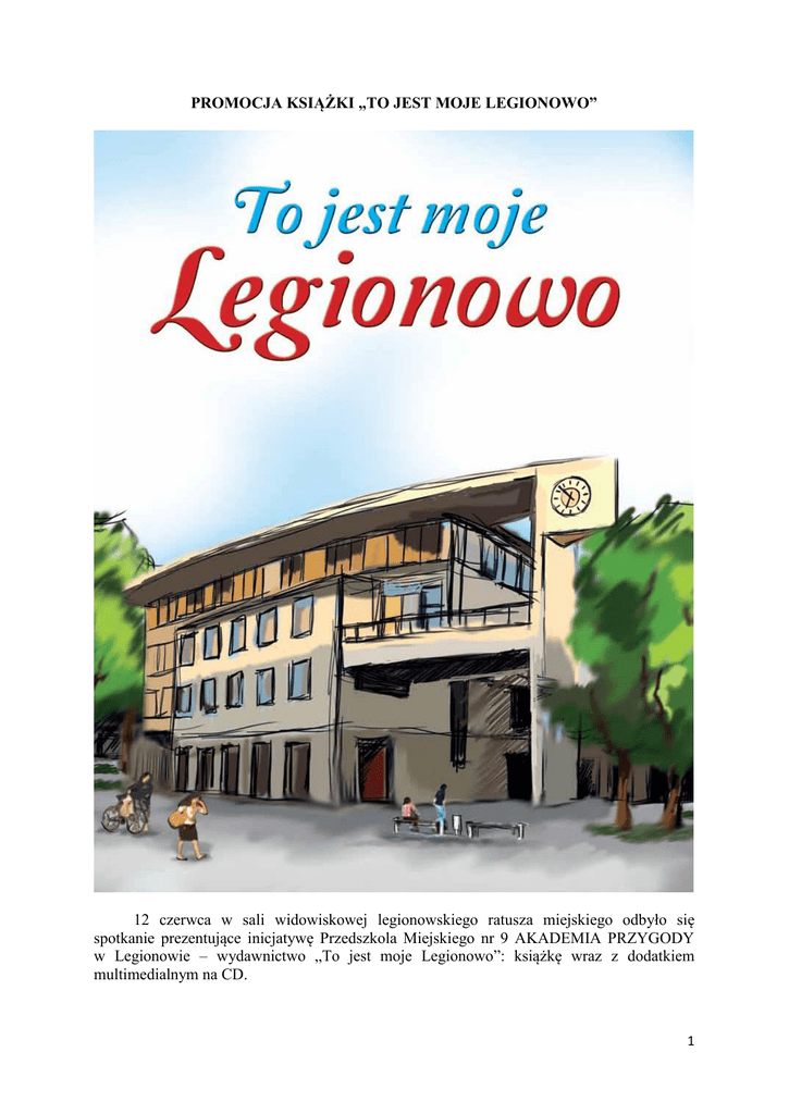 PROMOCJA KSIĄŻKI „TO JEST MOJE LEGIONOWO” 12 czerwca w sali widowiskowej legionowskiego ratusza miejskiego odbyło się spotkanie prezentujące inicjatywę Przedszkola Miejskiego nr 9 AKADEMIA PRZYGODY w Legionowie – wydawnictwo „To jest moje Legionowo”: książkę wraz z dodatkiem multimedialnym na CD. 1 Książka zawiera wiersze poetki Anny Kaca opisujące Legionowo i jego najważniejsze obiekty. Jest tu wiersz nagrodzony w konkursie literackim, wierszowany quiz, zagadki i wiersze. Do jednego z nich powstała muzyka i nagrano piosenkę, która znajduje się na dołączonej płycie. W książce są propozycje gier i zadań logicznych sprawdzających podstawową wiedzę o Legionowie: eliminatka, „znajdź różnicę”, labirynt. Płyta CD zawiera ciekawostki: herb i flagę wraz z objaśnieniami ich symboliki, hejnał miejski, wspomnianą piosenkę o Legionowie: „Miejsce na Ziemi”, komputerową grę edukacyjną „Zagadki”, wirtualną wycieczkę po ratuszu miejskim, wirtualny spacer po stadionie w Legionowie, Street View Legionowo oraz plan powiatu legionowskiego wraz z wykazem placów zabaw dla dzieci. W spotkaniu uczestniczyli między innymi przedstawiciele władz powiatu i gminy Legionowo, zaproszeni radni, dyrektorzy bibliotek, szkół i przedszkoli Legionowa i powiatu, nauczyciele, twórcy i pasjonaci zaangażowani przy tworzeniu wydawnictwa, przedstawiciele instytucji wspierających realizację projektów przedszkola w zakresie edukacji regionalnej. Dr hab. Jacek Szczepański – dyrektor Muzeum Historycznego w Legionowie mówił o znaczeniu edukacji regionalnej i poznawania swojej miejscowości, jej historii i teraźniejszości od najmłodszych lat. Poetka tworząca dla dzieci – p. Anna Kaca „wytłumaczyła się” – dlaczego pisze o Legionowie, a wydawnictwo zaprezentowała dyrektor Przedszkola Miejskiego nr 9 AKADEMIA PRZYGODY – p. Beata Piasecka. Przedstawiła w formie prezentacji działania przedszkola w projekcje edukacji regionalnej oraz te, które doprowadziły do powstania książki. Nauczycielki Przedszkola Miejskiego nr 10: Małgorzata Wojnicz-Zagrajek i Ewa Szmyd zaprezentowały realizowany z dziećmi projekt „Nasze miasto wczoraj i dziś”, którego efektem było stworzenie albumu obrazującego zmiany, jakie zaszły w Legionowie na przestrzeni lat – z wykorzystaniem starych i nowych fotografii miasta. Wiersze z wielkim zaangażowaniem przedstawiły przedszkolaki z przygotowane przez nauczycielki – p. Agnieszkę Miller i p. Teresę Rokicką. „Dziewiątki” Największe emocje wzbudziła gra komputerowa oraz quiz – zabawa z publicznością poprowadzona przez samą autorkę – Annę Kaca. Ważnym powodem spotkania było podzielenie się z nauczycielami przykładami dobrych praktyk w zakresie edukacji regionalnej oraz zaproszenie ich do wspólnego tworzenia nowych rozwiązań w wirtualnym projekcie „LEGIONOWO - MAŁA OJCZYZNA”, do którego p. Beata Piasecka zaprosiła nauczycieli z Legionowa oraz powiatu. Ważnymi gośćmi spotkania okazali się ludzie, którzy „pro bono” pracowali przy powstaniu publikacji: p. Anna Kaca – autorka wierszy, p. Monika Klatka – autorka ilustracji i składu graficznego książki, p.p. Elżbieta i Paweł Gubała – autorzy muzyki i nagrania piosenki, p. Piotr Pietrzak – twórca gry komputerowej, sponsorzy, dzięki którym książka jest wydawnictwem bezpłatnym oraz ci, którzy wspierali projekt merytorycznie: p. Jacek Szczepański i p. Wojciech Jeute oraz pomysłodawczyni i autorka programu edukacji regionalnej realizowanego przez lata w PM nr 9 – p. Zofia Błaszczak. Książka trafi do bibliotek, przedszkoli i szkół podstawowych całego powiatu. 2 P. Piasecka wyraziła nadzieję, że będzie to jedynie inspiracja dla twórczych nauczycieli do podzielenia się z innymi ciekawymi działaniami i pomysłami w ramach wirtualnego projektu, który wystartuje we wrześniu na stronie internetowej przedszkola: www.pm9.legionowo.pl Na zakończenie nagrody odebrali laureaci Rodzinnego Konkursu Fotograficznego „Moje Legionowo” organizowanego cyklicznie co pięć lat przez przedszkole. Promocji towarzyszyła wystawa nagrodzonych w konkursie fotografii. Zapraszamy do galerii nagrodzonych prac tutaj. Nad sprawnym przebiegiem spotkania i działaniem sprzętu multimedialnego czuwała nauczycielka – p. Wiesława Twardowska, a oprawę graficzną stanowiły piękne ilustracje wykonane do książki przez p. Monikę Klatka. Opracowanie: PM nr 9 3
