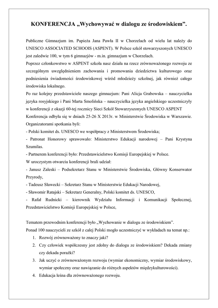 KONFERENCJA - Publiczne Gimnazjum im. Papieża Jana Pawła II