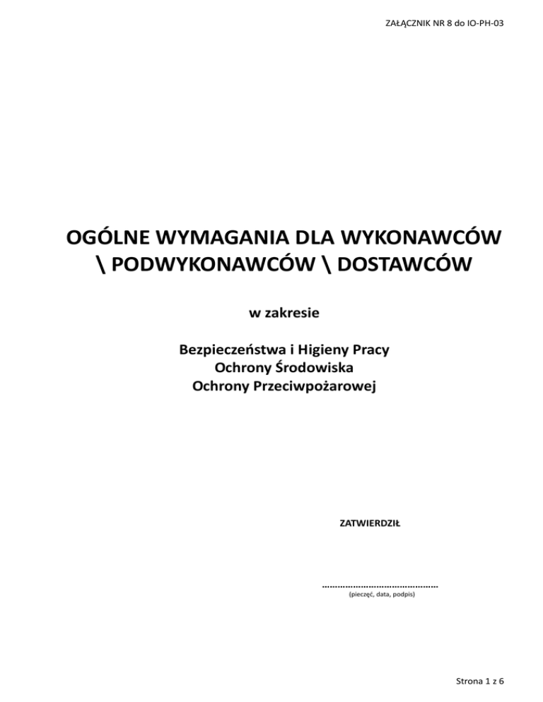 ogólne wymagania dla wykonawców \ podwykonawców \ dostawców