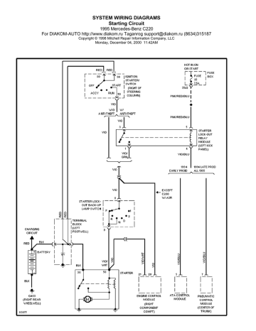 SYSTEM WIRING DIAGRAMS Starting Circuit 1995 Mercedes-Benz C220 For DIAKOM-AUTO http://www.diakom.ru Taganrog [email protected] (8634)315187 Copyright © 1998 Mitchell Repair Information Company, LLC Monday, December 04, 2000 11:42AM