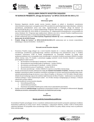 Regulamin zwrotu kosztów dojazdu