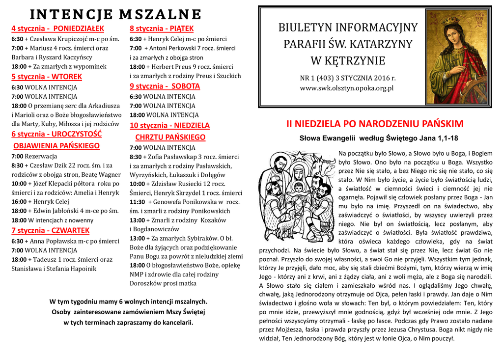3 stycznia 2016 r. (nr 1) - Parafia św. Katarzyny w Kętrzynie