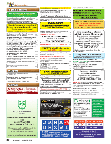 Ogłoszenia... Posadzki betonowe agregatem, tel. 602 847 097 Sprzedam Profesjonalne garaże metalowe (1) Mińsk Maz., tel. 25 759 14 00; 502 502 074 Drewno kominkowe, opałowe, rozpałkowe, trociny, transport gratis, tel. 691 471 460 (2) Zbiorniki betonowe, szamba, separatory, kompleksowo z atestem, tel. 504 271 608 (4) Garaże blaszane wzmocnione, bramy garażowe, kojce dla psów. (43) Dowóz, montaż gratis, raty! Producent (25) 740 42 02, 512 245 075 www.robstal.pl Roztrząsacz obornika, 4 t, mało używany i inny (361) sprzęt rolniczy, tel. 25 759 23 72 Działka Tyborów/Mińsk Mazowiecki, 2000 m2, 40 zł/m2, wjazd z asfaltu na warunkach zabudowy, tel. 519 625 700 (392) Sprzedam lokal usługowy 102 m2 w Siedlcach, ul. B. Chrobrego 11 lok. 113, parter: dogodny (397) dla niepełnosprawnych, tel. 606 665 331 Zamienię lokal usługowy 102 m2 w Siedlcach, ul. B. Chrobrego 11 lok. 113 na podobny w Mińsku Mazowieckim. Warunki (398) do uzgodnienia, tel. 606 665 331 Działka budowlana w Legaczu, tel. 511 304 660 Choinki, świerk pospolity, tel. 505 010 340 Sprzedam mieszkanie 72 m2, 4 pokoje, centrum Mińska, tel. 783 033 690 Drewno suche do pieca, kominka od 100 zł/m3, tel. 519 642 304 tel. 697 726 021 (9) Budowa domów, tynki agregatem, malowanie, elewacje, remonty, tel. 507 527 760 (6) Elektryk, tel. 502 947 517 (7) Kancelaria finansowa tel. 602 840 093 (10) TYNKI AGREGATEM, TEL. 695 995 330 (11) tel. 602 411 463 (13) BUDOWA DOMÓW, tel. 603 555 572 (401) (402) (403) (16) MALBRUK. Układanie kostki brukowej z materiałem lub bez, wycinka drzew, tel. 503 008 987 (19) Instalacje elektryczne, pomiary, uprawnienia, tel. 517 547 421 (20) Elektryk, tel. 691 023 567, www.facebook.com/eltech.elektryk (22) Tynki agregatem (75) (81) (82) Usługi • fotoreportaże • sesje plenerowe tel. 607 221 522 www.fotopia.pl tel. 509 622 958 Parkiety: układanie, cyklinowanie, renowacja, tel. 512 644 523 (23) (26) Krycie dachów, więźby dachowe, podbitki, ocieplenia poddaszy, tel. 602 502 355 (29) Usługi hydrauliczne, tel. 502 686 023 (28) Hydraulik, tel. 697 055 884 (31) Remonty i wykończenia wnętrz, tel. 793 009 835 Sprzątanie domów, mycie okien oraz po remontach, tel. 530 946 405 (258) (30) Kopalnia Piasku w Górach koło Jakubowa oferuje piasek, żwir, pospółkę, ziemię – z transportem, tel. 507 104 222, www.kopalniapiasku.pl(27) Bóle kręgosłupa, pleców, mięśni i stawów, fibromialgia Rwa kulszowa, stres, nadwaga. Cellulit, zmarszczki, blizny. Złamania, rany, oparzenia. Odleżyny, obrzęki, zaniki mięśni. Masażysta mgr inż. Witold Wrotek. Wizyty domowe godz. 8–21, tel. 603 937 032 Geodeta, klasyfikacja gruntów (400) Zakupię każde auto, tel. 519 431 745 wszystkie uroczystości Posadzki agregatem spalinowym (399) Kupię całe auta i motory uszkodzone, tel. 505 488 414 fotografia (5) Budowa domów jednorodzinnych, (8) tel. 608 138 592 biuro rachunkowe Krystyna Chojnowska Tynki agregatem, tel. 660 717 282 (4) Remonty, elewacje, adaptacja poddaszy, układanie paneli, tel. 500 295 476 (15) Kupię Kupię tanio ziemię na podniesienie terenu, 20-30 wywrotek, tel. 607 221 522 Docieplanie budynków, tel. 502 053 214 SZYBKO, TANIO, SOLIDNIE Izolacje poddaszy pianką poliuretanową, remonty, wykończenia wnętrz, tel. 511 985 523 www.kelmetgaraze.pl Sprzedam używaną sypialnię białą, tel. 600 042 553 (3) (33) (285) (34) Usługi remontowo-budowlane, elektryka, tel. 507 608 437 (293) Zdjęcia do dokumentów (dowód osobisty, paszport, prawo jazdy itp.) z dojazdem do klienta, tel. 607 221 522 (pp) Gładzie, malowanie, tel. 663 215 976 (320) Drwal, alpinista, wycinka i pielęgnacja drzew, tel. 510 319 637 (323) Usługi glazurnicze, tel. 789 252 848 (329) Sprzątanie domów, mieszkań, tel. 604 945 361 (331) Producent „GATER” usługi i sprzedaż. Deska tarasowa, elewacyjna, podłogowa, sztachety i inne, tel. 25 752 33 20, 502 396 164 (337) Pomogę: prace licencjackie, magisterskie, inne, korekta artykułów, tel. 503 518 096 (338) Tynki cementowo-wapienne wykonywane ręcznie, (341) tel. 698 763 184 Układanie kostki, tel. 502 332 559 (342) Schody, tanio, fachowo, tel. 503 157 260 (344) Opieka nad seniorami przez doświadczone opiekunki z Ukrainy, tel. 575 754 440 (345) ZUS, KADRY, PŁACE BIURO RACHUNKOWE ANNA GUT LICENCJA MF Pełna obsługa księgowo-kadrowa firm GS „SCh” w Mrozach sprzeda: Mercedes Benz 308 D wywrotka, 1994 r. oraz ciągnik Ursus C-360 wraz z ładowarką TUR 1976 r. Oferty prosimy składać do 25 listopada 2016 r. do biura spółdzielni w Mrozach, ul. Jana Kilińskiego 10, 05-320 Mrozy. Informacje telefoniczne: 500 125 300 20 Co słychać? – nr 46 (997) 2016 Mińsk Maz., ul. Piłsudskiego 33 / D - I p. Czynne: pn.-pt. 8.00-16.00 tel. kom. 667 417 007 e-mail: [email protected] www.edekret.pl KPiR, RYCZAŁT KSIĘGI HANDLOWE ROZLICZENIA ROCZNE OSBÓB FIZYCZNYCH WYPROWADZANIE ZALEGŁOŚCI