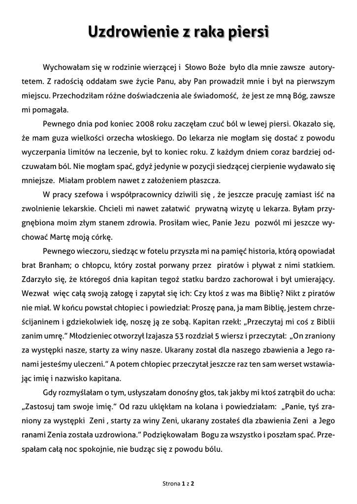 Uzdrowienie z raka piersi