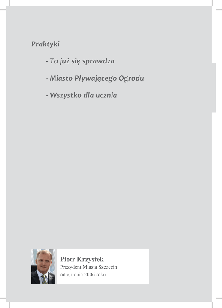 Praktyki - To już się sprawdza - Miasto Pływającego Ogrodu - Wszystko dla ucznia Piotr Krzystek 172 Rzeszów Prezydent Miasta Szczecin od grudnia 2006 roku Unia Metropolii Polskich