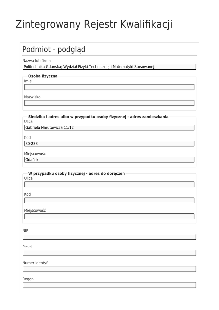 Wydruk - Zintegrowany Rejestr Kwalifikacji