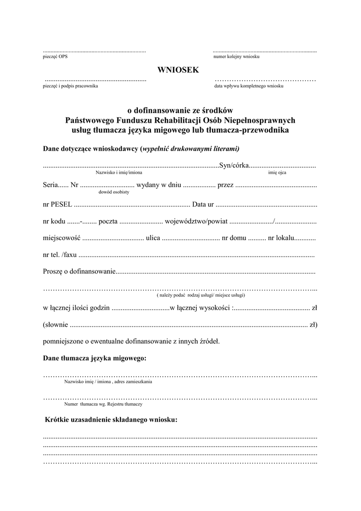 Wniosek o dofinansowanie usług tłumacza języka migowego lub