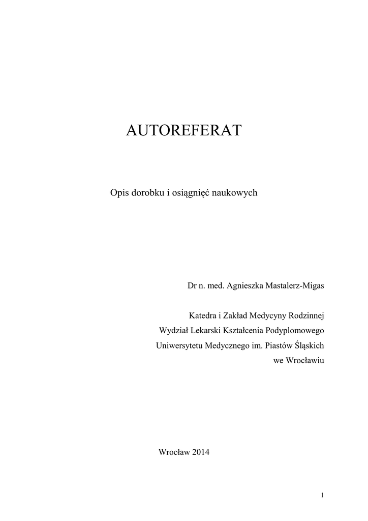 autoreferat - Wydział Lekarski Kształcenia Podyplomowego