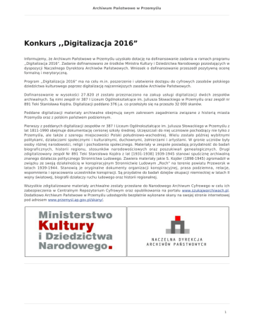 Konkurs ,,Digitalizacja 2016 - Archiwum Państwowe w Przemyślu