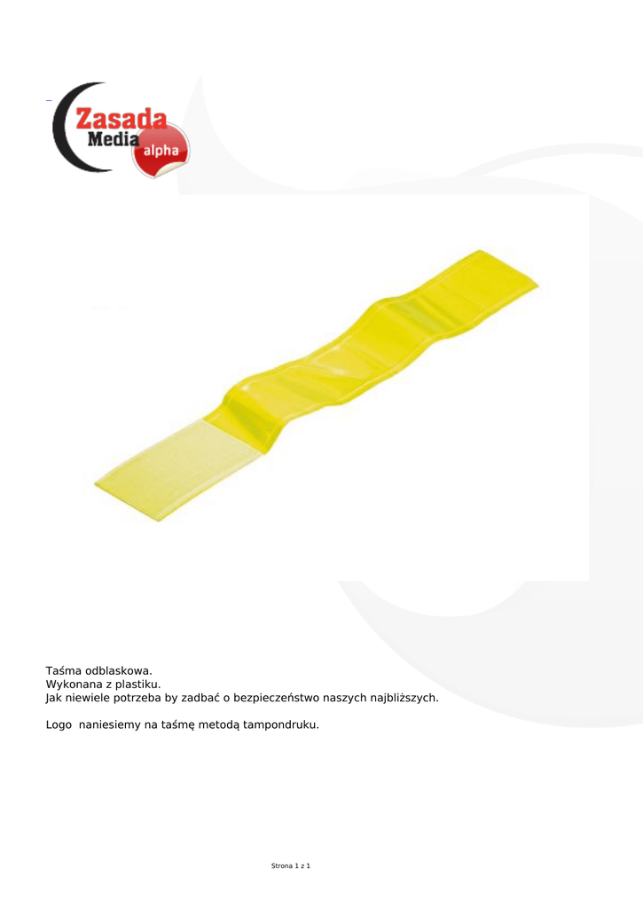 Taśma odblaskowa. Wykonana z plastiku. Jak niewiele potrzeba by zadbać o bezpieczeństwo naszych najbliższych. Logo naniesiemy na taśmę metodą tampondruku. Strona 1 z 1