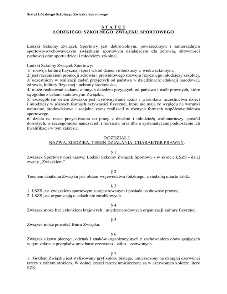 S T A T U T ŁÓDZKIEGO SZKOLNEGO ZWIĄZKU SPORTOWEGO