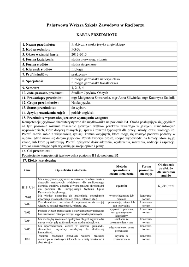 FGN PNJA B2 - Państwowa Wyższa Szkoła Zawodowa w Raciborzu