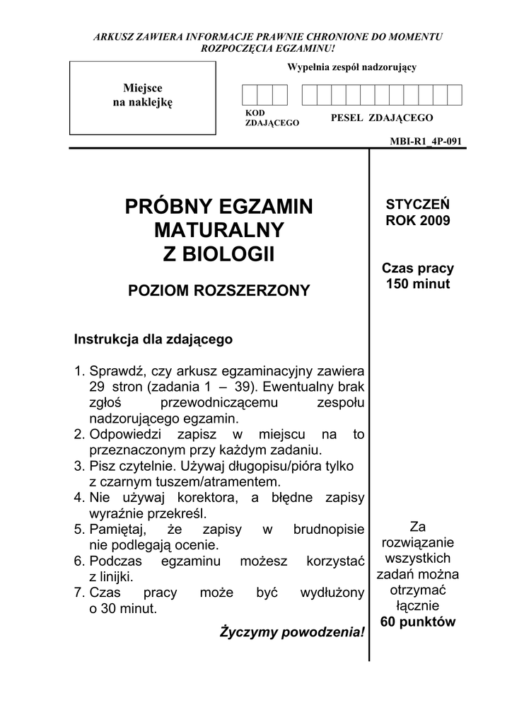 PRÓBNY EGZAMIN MATURALNY Z BIOLOGII