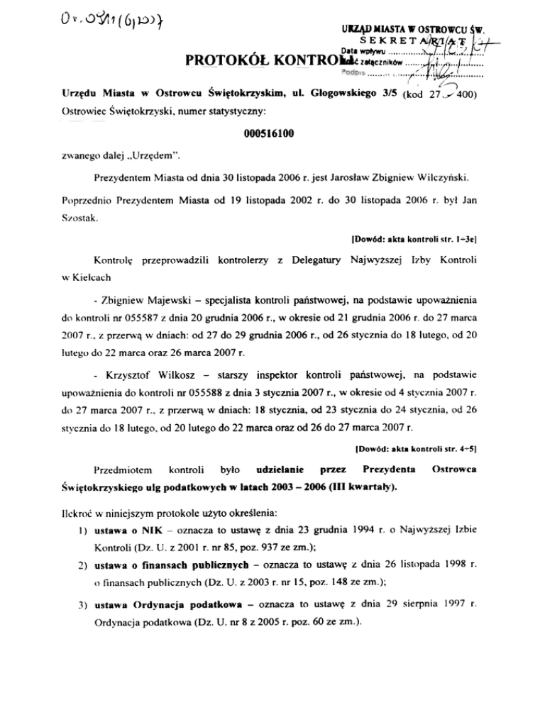 do kontroli nr OSSSI8z dnia 3ltycmia 2007 r., w okresieod -4stycznia2007f.