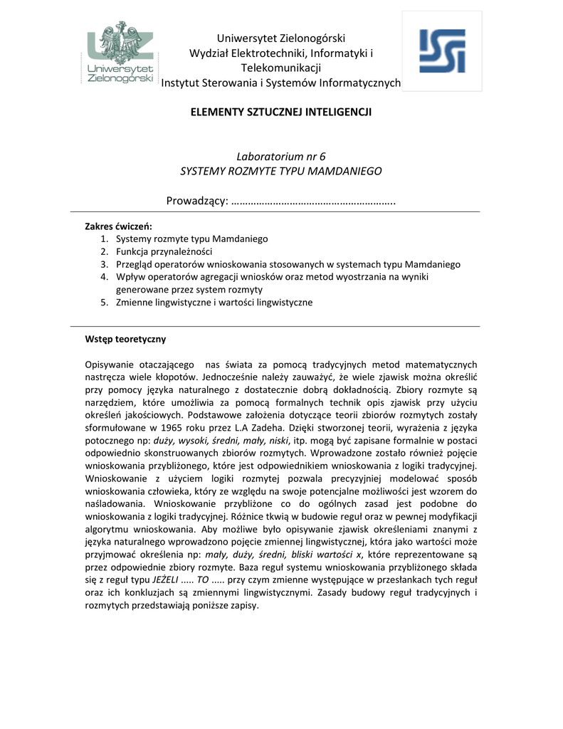 1. Systemy rozmyte typu Mamdaniego