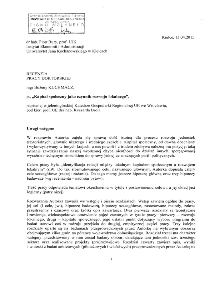 napisanej w jeleniogórskiej Katedrze Gospodarki Regionalnej UE we