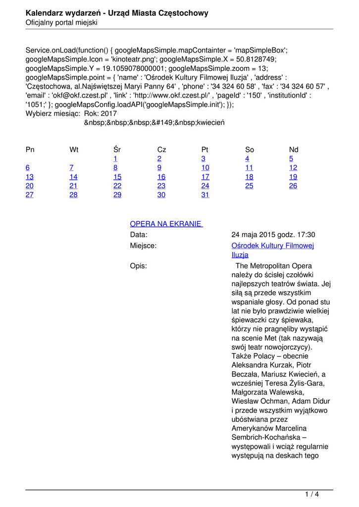 Kalendarz wydarzeń - Urząd Miasta Częstochowy