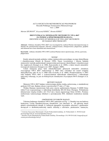 identyfikacja minerałów meteorytu nwa 4047 za pomocą