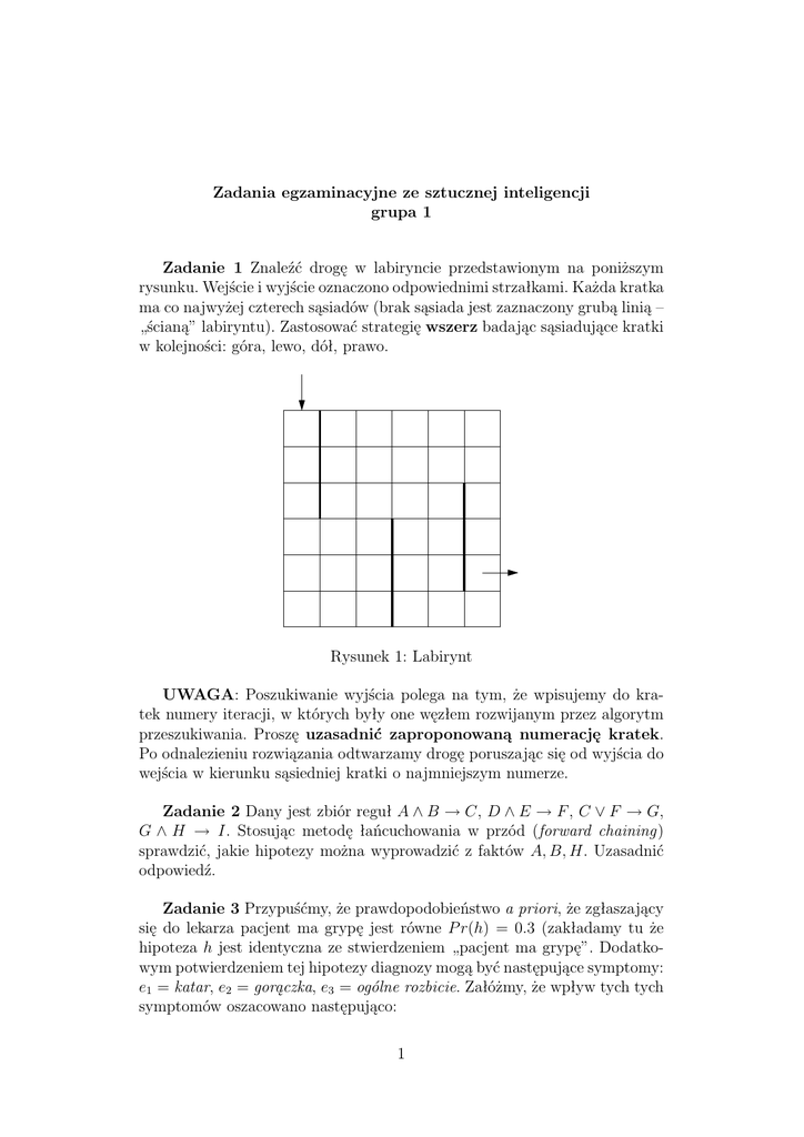 Zadania egzaminacyjne ze sztucznej inteligencji grupa 1