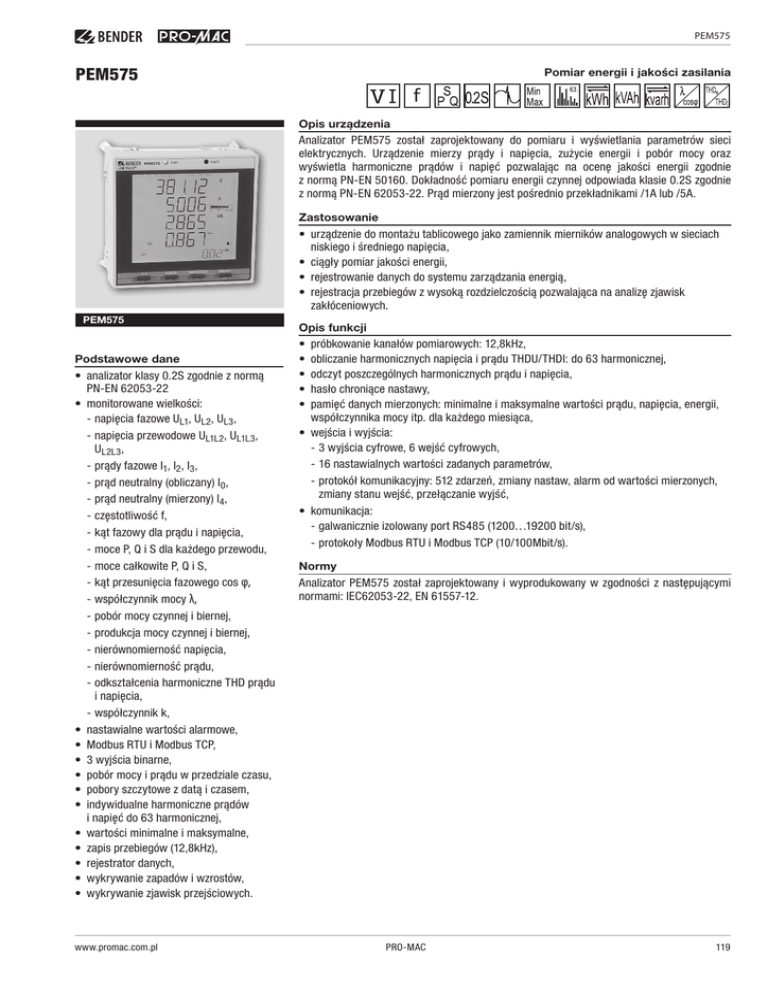 karta katalogowa analizatora PEM575 - Pro-mac