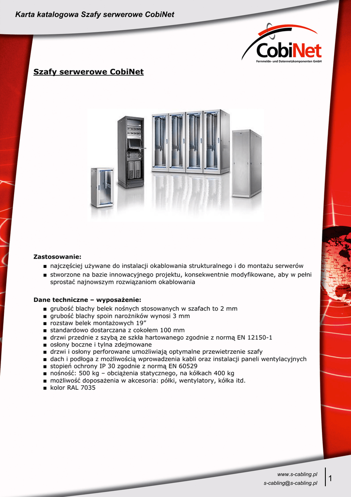 Karta katalogowa Szafy serwerowe CobiNet Szafy