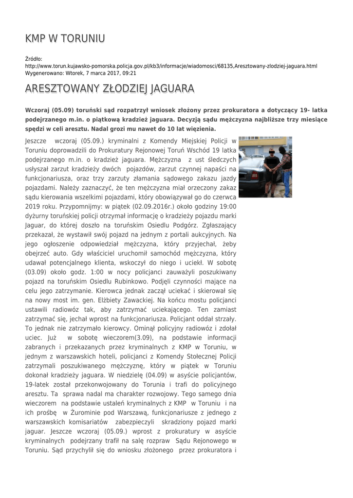 KMP W TORUNIU ARESZTOWANY ZŁODZIEJ JAGUARA