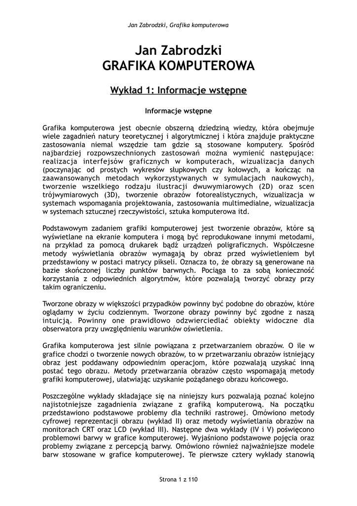 Jan Zabrodzki GRAFIKA KOMPUTEROWA