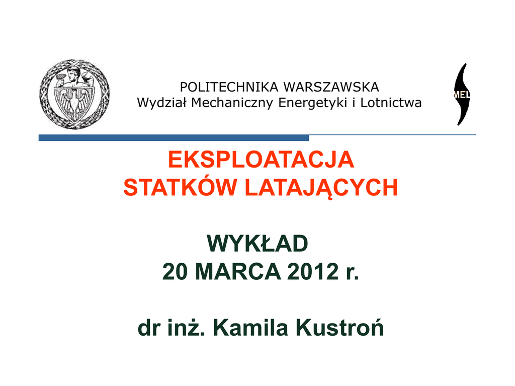 EKSPLOATACJA STATKÓW LATAJĄCYCH WYKŁAD 20