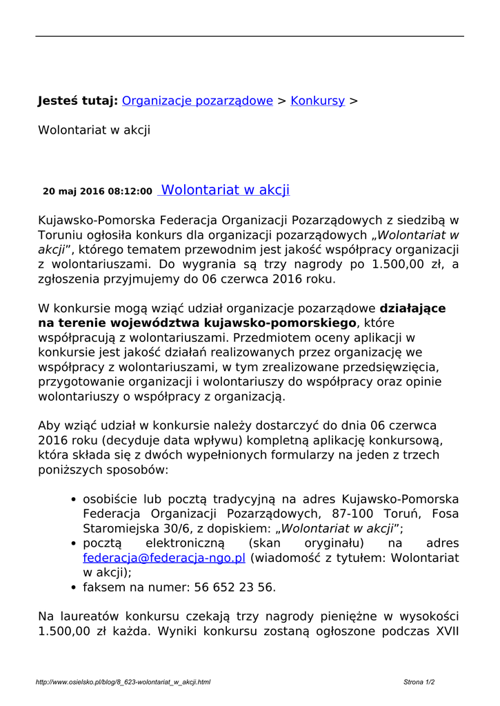 Organizacje pozarządowe > Konkursy > Wolontariat w akcji