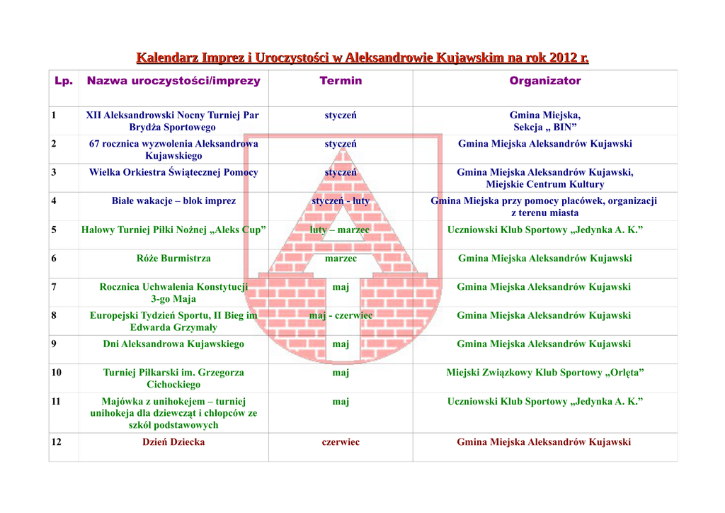 Kalendarz Imprez i Uroczystości w Aleksandrowie Kujawskim na rok