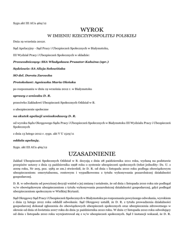 D - Portal Orzeczeń Sądu Apelacyjnego w Białymstoku